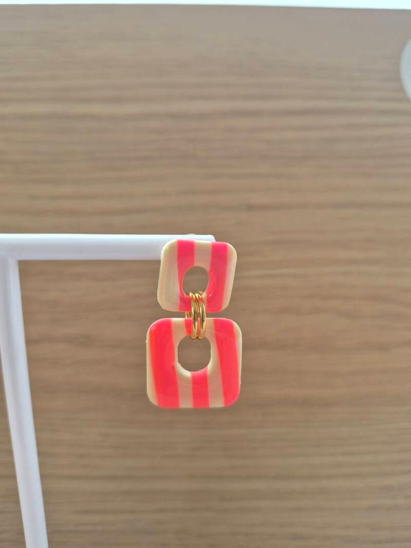 Oorbellen in felroze en lichtgeel